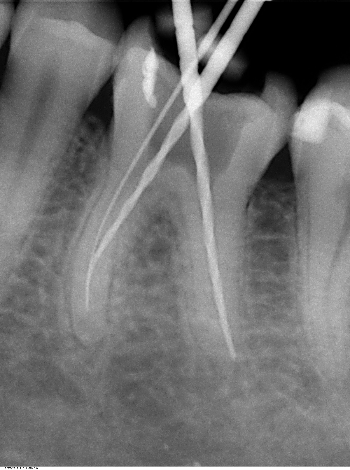 In der Behandlungsfolge wird der Wurzelkanal eröffnet, erweitert, gereinigt und abschließend mit einer Wurzelfüllpaste bakteriendicht verschlossen.
