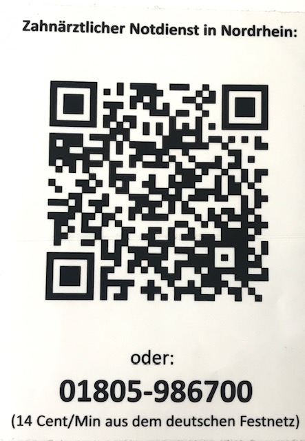 Außerhalb unserer Sprechstunden sowie am Wochenende und an Feiertagen erreichen Sie den zahnärztlichen Notdienst unter folgender